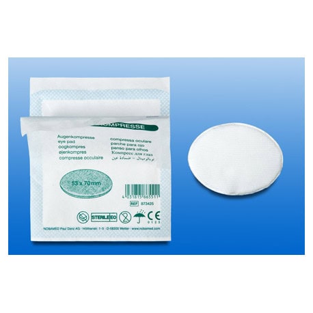 Oogkompres van watten in gaas afgesloten.ย Het steriele oogkompres heeft een ovaal formaat. Het kompres wordt gestanst uit een laag watten welke aan beide uiteinden afgesloten is met gaas. Voordeel van dit “lichte” oogcompres is de hoge luchtdoorlaatbaarheid en zachtheid
