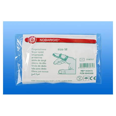 NOBARIGIDยฎ-open is een kant-en-klare kikkervormige aluminium vingerspalk met aan รฉรฉn zijde een binnenbekleding. Het product dient in de gewenste vingerpositie te worden gebogen. Om de spalk te stabiliseren worden de uitstekende delen enigszins rond de vinger gebogen. Vervolgens wordt de spalk gefixeerd door middel van een verband. De vingerspalk is individueel en hygiรซnisch verpakt.