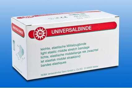 De universeel zwachtel bestaat uit een niet gebleekte, middellange rek zwachtel en is vervaardigd uit ca. 63% katoen, 30% polyamide and 7% lycra (elastaan) De rek is ca. 120% en is universeel te gebruiken.