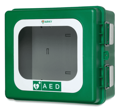 Waterdichte robuuste kast van High Impact Buitenmaat: b x h x d 400 x 340 x 200mm Binnenmaat: b x h x d 320 x 280 x 180mm De kast is voorzien van roestvaste onderdelen en hierdoor bestand tegen alle weersinvloeden De kast is voorzien van kunststof klemmen waardoor de AED stevig op zijn plaats blijft RVS sluitingen zijn geborsteld Neopreen afdichtingen Voorzien van oog voor hangslot / cijferslot/breeksluiting Voorzien van een zichtvenster Voorzien van alarm met aan-/uitknop