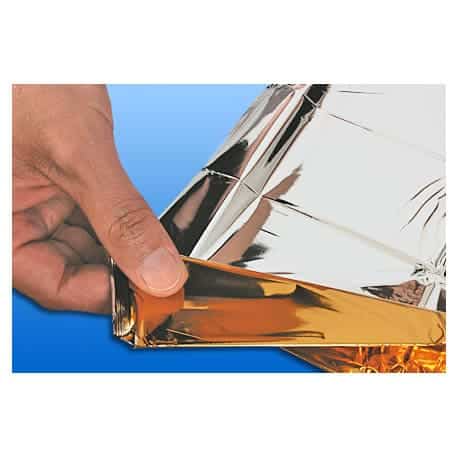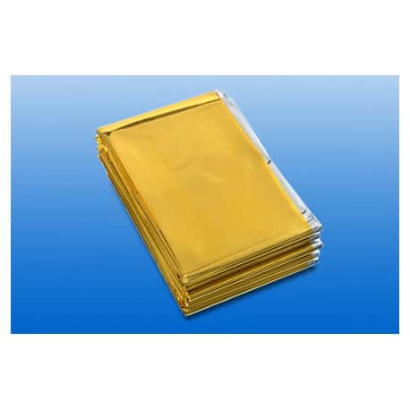 De reddingsdeken is gemaakt van metaalachtig PE folie en beschermd tegen kou, regen, hitte en wind. Het is goud/zilver van kleur en heeft een bijzonder grote omvang.