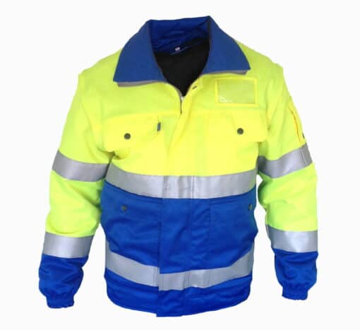 De buitenstof is van Ten Cate (NB1043). Dit is een 80% polyester en 20% katoen kwaliteit en wel zo dat het polyester voornamelijk aan de buitenkant zit en het katoen aan de binnenkant. Door de Ten Cate stof is de jas niet alleen sterk, maar behoudt deze ook nog eens zijn kleur en glanzende uiterlijk, zelfs na herhaaldelijk (industrieel) wassen. Verder is de buitenstof uitgevoerd met een water- / olie- en vuilafstotende fluor-carbon coating en door het gebruik van fluorescerende stoffen en de reflectie strepen van 3M voldoet de jas aan de norm EN471.